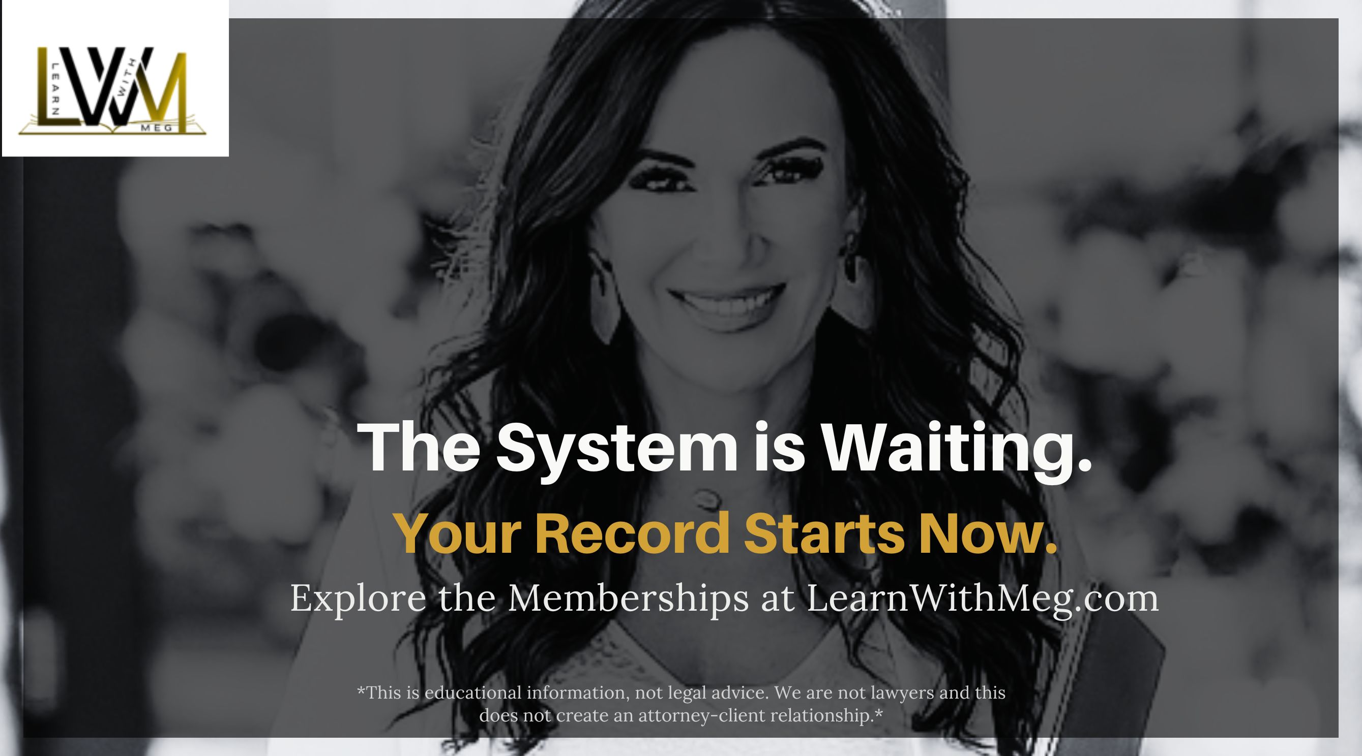 Learn With Meg and Stand With Meg provide educational information only. We are not lawyers, do not provide legal representation, and nothing on this site, in any course, download, email, video, or live call is legal advice or creates an attorney, client relationship. All case examples and results are for illustration only and are not typical; past outcomes do not guarantee future results.